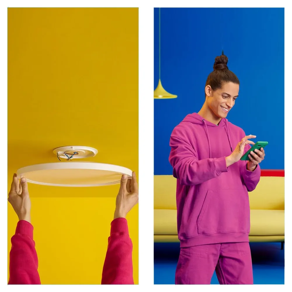 Smart SuperSlim LED-loftsarmatur i rund form, RGB og CCTTDet ekstra flade SuperSlim LED-loftsarmatur giver ikke kun omfattende, direkte almenbelysning, men også attraktiv loftsbelysning. Det overbeviser også med variable lysindstillinger, så det perfekte lys altid er tilgængeligt. Ud over lysstyrken kan lysfarven også justeres – med varmt hvidt til dagslyshvidt lys og farverige gradueringer er SuperSlim ekstremt variabel. Takket være den indbyggede WiZ-teknologi kan LED-loftslampen kobles sammen med smartphone/tablet via WLAN og styres med den tilhørende WiZ-app. Derudover er betjening via WiZ-vægkontakten eller WiZ-fjernbetjeningen også mulig (se tilbehør).Tekniske data / kompatibilitet:- kan integreres via WLAN; bridge eller gateway er ikke nødvendig- kan styres med smartphone eller tablet med WiZ-app til iOS (fra version 11.0) og Android (fra version 4.4) på stedet eller på farten (internetforbindelse påkrævet)- over 64.000 hvide toner kan indstilles (Tunable White), 16 millioner farverige nuancer- kan dæmpes eller slukkes (se tilbehør). app-funktioner: direkte omskiftning og dæmpning; lagring af populære scener via kamera-snapshot; tildeling af armaturer til rum/grupper; oprettelse af tidsplaner; valg af forudindstillede belysningstilstande/scener; tildeling af flere brugere og tildeling af adgangsrettigheder; betjening af op til 10.000 WiZ-lamper – kan styres med WiZ-fjernbetjening (se tilbehør) – to favoritfunktioner kan tildeles den konventionelle kontakt via app (WiZclick) – stemmestyring, når den er integreret i Google Home, Amazon Alexa (Amazon-webtjenester abonneres i lampens levetid) eller Apple HomeKit – integration i IFTTT til sammenkobling med andre smarte enheder