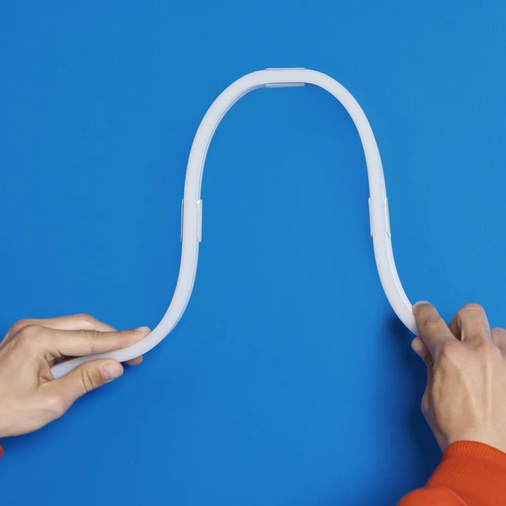 Smart styrbar omgivelsesbelysning takket være WiZ-teknologi – RGB LED-strip Neon FlexDen fleksible LED-strip Neon Flex giver en homogen lyslinje i alle farvenuancer til tørre indendørs områder. Båndet kan ikke kun lyse i en ensartet farve, men også vise forskellige farvenuancer i sektioner. Takket være den indbyggede WiZ-teknologi kan Neon Flex forbindes til en smartphone/tablet via WLAN og styres med den tilhørende WiZ-app. Derudover er betjening via WiZ-vægkontakten eller WiZ-fjernbetjeningen også mulig (se tilbehør).Tekniske data / kompatibilitet:- kan integreres via WLAN; bro eller gateway er ikke nødvendig- inkluderer stik og strømforsyningsenhed til strømforsyning via stikkontakten- kan styres med smartphone eller tablet med WiZ-app til iOS (fra version 11.0) og Android (fra version 4.4) på stedet eller fra vejen (internetforbindelse kræves)- 16 millioner farvenuancer- kan dæmpes via WiZ-appen (se tilbehør). app-funktioner: direkte omskiftning og dæmpning; lagring af populære scener via kamerasnapshot; tildeling af armaturer til rum/grupper; oprettelse af tidsplaner; valg af forudindstillede lystilstande/scener; tildeling af flere brugere og tildeling af adgangsrettigheder; betjening af op til 10. 000 WiZ-lamper.000 WiZ-lamper- kan styres med WiZ-fjernbetjening (se tilbehør)- to favoritfunktioner kan tildeles den konventionelle kontakt via app (WiZclick)- stemmestyring, når den er integreret med Google Home, Amazon Alexa (Amazon-webtjenester abonneres i lampens levetid) eller Apple HomeKit- Matter-certificeret- integration i IFTTT til kobling med yderligere smarte enheder