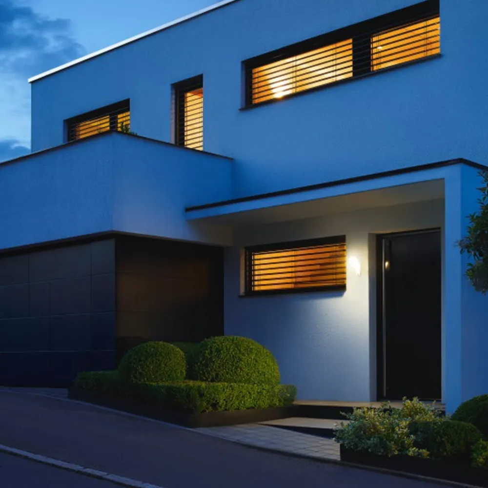 Det LED-betjente vægarmatur XLED slim S præsenterer sig i et særligt elegant design, som det kommer til udtryk gennem den slanke konstruktion af armaturhuset og det øverste skærmelement, der breder sig lidt væk fra væggen. Den indbyggede LED-belysningsteknologi er installeret under en opal plastikdæksel og sikrer et klart og ensartet lysmønster. I den nederste del af huset, som er fremstillet af UV-resistent plast og aluminium af høj kvalitet, er der en passiv infrarød sensor, som tænder og slukker lampen. Alt i alt scorer armaturet ikke kun med stor funktionalitet, men også med et unikt design.