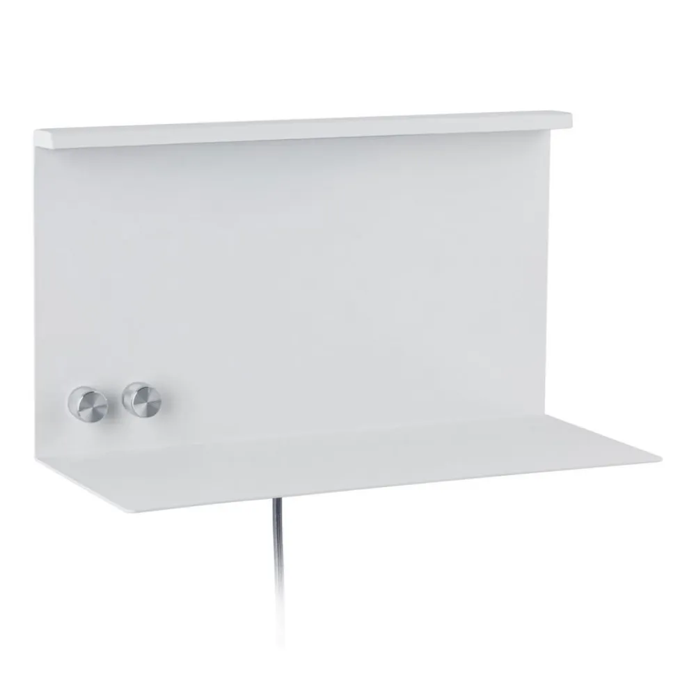 Dette behagelige og stemningsfulde belysningskoncept kan reguleres individuelt ved hjælp af to uafhængige afbrydere. Drejekontakterne i forkromet finish har ikke kun en tænd/sluk-funktion, men gør det også muligt at dæmpe de to LED’er. Takket være USB-porten kan smartphonen eller tabletten nemt oplades og har en direkte lagringsmulighed. Væglampen betjenes direkte via stikket på stikkontakten.