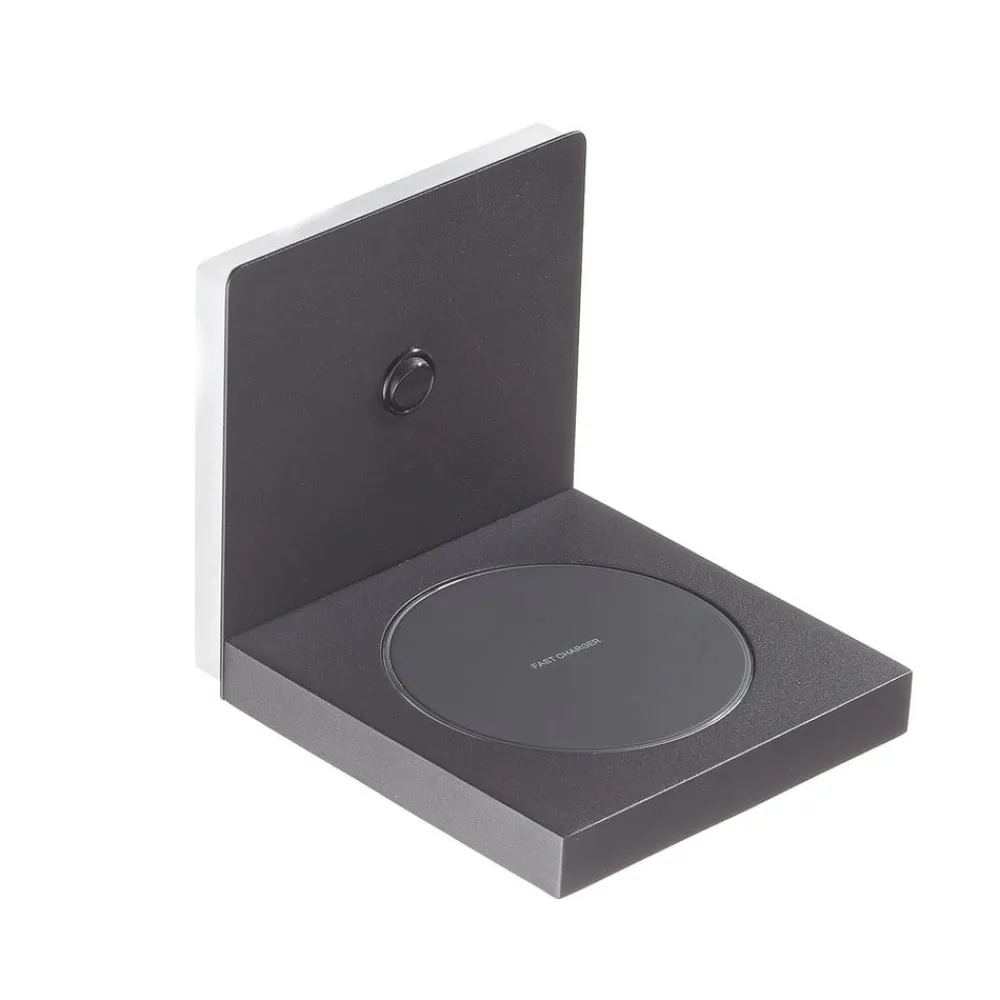 Zanzibar LED væglampe giver specielle lys accenter. Den består af en metalramme , der er monteret på væggen i en ret vinkel. Lampen har en smal hylde, hvori en moderne induktionsladestation er integreret. Det betyder, at mobiltelefoner kan oplades uden besværet med kabler. Ikke alle mobiltelefoner er kompatible med induktiv opladningsteknologi, så dette bør kontrolleres på forhånd.